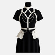White Leather Peplum Harness Corset Belt Top
