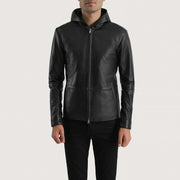 Andy Matte Black Hooded Leather Jacket - XS (US 34)