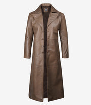Brown Leather Long Men's Duster Coat