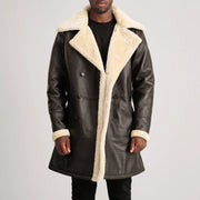 Charles Brown Leather Shearling Double-Breasted Coat - XS (US 34)