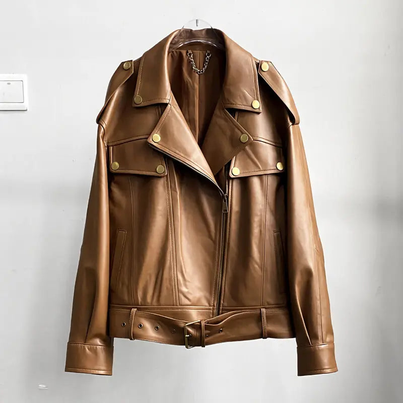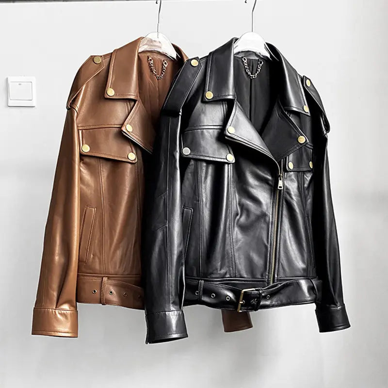 Unleash your inner rebel with these bold biker-style leather jackets! Featuring a striking asymmetrical zip-up front, statement lapel collar, and eye-catching metallic button details, these jackets are designed to turn heads wherever you go. The adjustable waist belt and structured shoulders add a touch of attitude and edge, making them perfect for anyone who loves to stand out. Available in classic black and rich brown, these jackets are the ultimate choice for adding instant cool to any outfit—whether you’re hitting the streets or heading out for a night with friends.