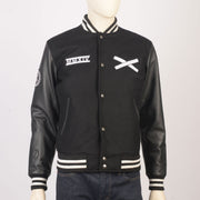 • Vaxton Black Striped Hybrid Varsity Jacket with the following changes:
