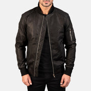 * Bomia Ma-1 Distressed Black Leather Bomber Jacket with the following changes:
