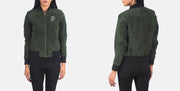 • Bliss Green Suede Bomber Jacket with the following changes: