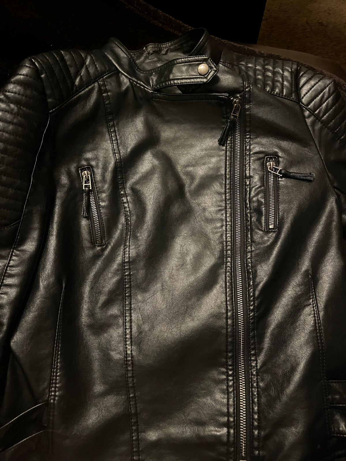 * Quilted stitching on the shoulder and upper arm