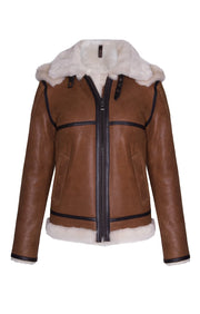 Ladies Leather Flying Jacket - Mid Brown - 10