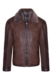 This men's leather nappa jacket is a symbol of enduring style and refined taste. Created from 100% shearling leather, this iconic flying jacket makes a classic fashion statement with timeless appeal, ensuring its position as a prized investment in your wardrobe. The delightful aroma of the leather exterior, paired with its cosy interior and distinct worn-in texture, radiates unparalleled luxury and enduring style. Enhanced with a throat strap, this zip-up jacket effortlessly merges classic design with practicality. Noteworthy for its fur-lined hood, this jacket promises warmth during chilly days, delivering both comfort and elegance to your ensemble.