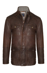 Enhance any ensemble with the men's Ryan leather jacket, a hallmark of refined taste. Meticulously designed in premium leather, it offers a plush feel and a tailored fit that ensures ease of movement. Its versatile collar, adjustable for wind protection or a laid-back look and strategically placed pockets epitomise the blend of luxury and practicality. This jacket is a statement of enduring style and quality.
