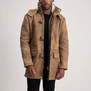 Nolan Distressed Brown Leather Duffle Coat - XS (US 34)
