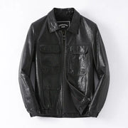 Make a bold impression with this classic black leather jacket! Its glossy finish, shirt-style collar, and dual flap chest pockets combine timeless style with modern attitude. The front zipper closure, buttoned cuffs, and elastic hem ensure a comfortable and tailored fit. Whether you’re dressing up for a night out or adding edge to your daily look, this jacket is your ultimate style companion. Own the night and let your confidence shine!