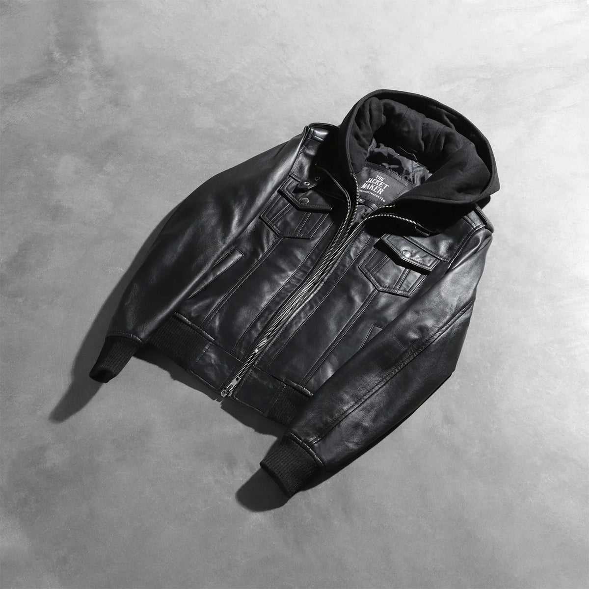 Roslyn Black Hooded Leather Bomber Jacket - XXS (US 00)
